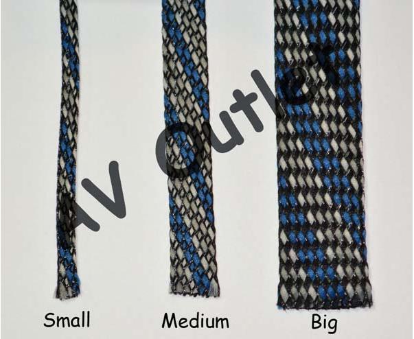 The ViaBlue "Blue" braided sleeve, aside from the obvious aesthetic enhancements, helps protect cables against abrasion, bending and incident light radiation. The braided sleeve manufactured by ViaBlue is designed significantly differently than competing braided sleeves. The approach taken here provides nearly a one size fits all scenario. This is achieved by using expanding fabric fillers within the sleeve along with monofilaments. As the sleeve expands and contracts so does the fabric. This dramatically reduces the see through effect found in monofilament designs.