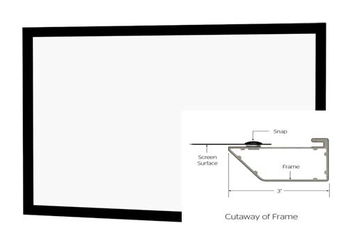 The Cinema Contour features a wider, more substantial frame as well as the latest technology in projection surfaces designed for 4K and Ultra HD to maximize the technology of your projector. The larger standard black frame gives the eye a point of reference and enhances contrast for film purists and aficionados. The Cinema Contour can be customized by frame, finish, size and surface. The Pro-Trim fabric frame covering aesthetically enhances the appearance of the installation while absorbing light that surrounds the viewing area.