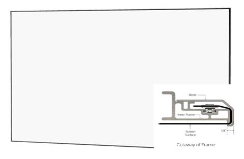 Designed to look like a large flat panel, the UTB Contour can more than double the size of the largest flat panel televisions available. The UTB Contour features the smallest edge of any fixed frame projection screen on the market with its ultra thin 1/4" front frame bezel. Additionally, the low profile design sits a mear 1 1/2" off the wall.