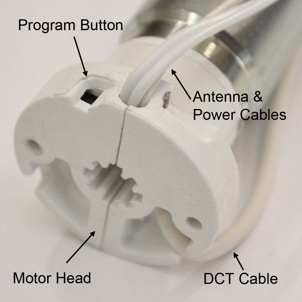 The motor and end plug slide into the tube without the use of tools. The included roller shade tube features double stick tape to securely attach your roller shade material. We recommend cutting the shade material height so a minimum of 1.5" extra wraps of material is left on the shade tube when the shade is fully down. This prevents the material from directly pulling on the tape.