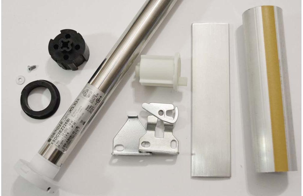 This shade motor kit includes everything you need to build a motorized roller shade except the fabric, remote control and charger.