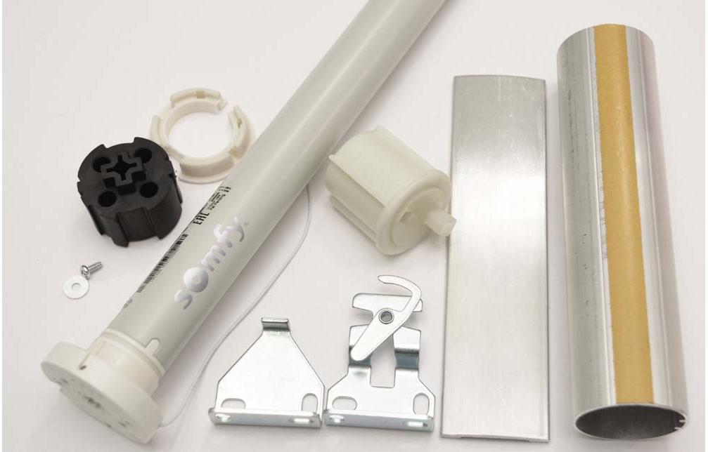 This shade motor kit includes everything you need to build a motorized roller shade except the fabric, remote control and power supply.