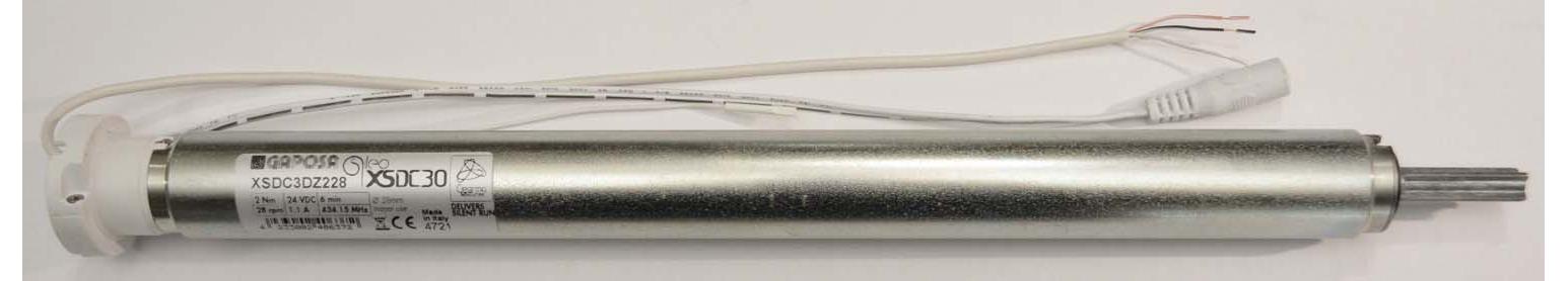 The Gaposa XS30 series Super Sileos XS30-DC2028RD is a quiet 24VDC roller shade motor. Gaposa XS Super Sileos motors are engineered with superior noise reduction technology and are barely heard. This compact, low profile shade motor can be used in 1.5" or 2" Rollease tubes and with its 2Nm torque can be used in shades as wide as 120". Choose this motor where small and large shades need to be lifted and where operation must be at their quietest levels. This shade motor is powered via 24VDC from a wall plug-in transformer or from a remotely located power supply.