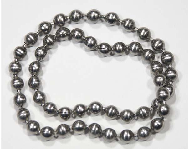 Stainless Steel Beaded Chain: This type of chain is comprised of a many beads closed onto tiny metal shafts that connect each bead. The spacing of each bead is very close. The benefit of stainless steel beaded chains over plastic and nickel plated steel is that the stainless steel beaded chains have a tensile strength of approximately 90lbs compared to app. 50 lbs of plastic or nickel plated steel. Metal chains are also more flexible than plastic beaded chains and they can be made into a continuous loop without a beaded chain connector. The disadvantages of stainless steel beaded chains are that they can kink and are more subject to fatigue over the life of the shade.