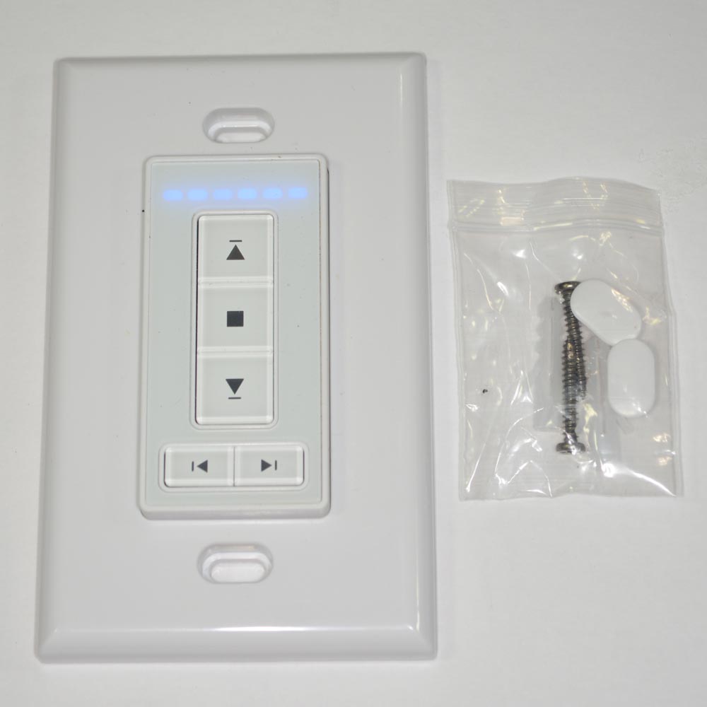 The A-OK AC135-06 radio frequency 6 channel wireless wall switch features a contemporary design with push button controls. 6 Channel remotes are great for individual shade, group room and whole home shade control. All A-OK remote controls allow you to program the limits of the shade and up to 4 intermediate positions. The wireless wall switch features a magnetic base so the remote can be easily removed and used as a hand held remote control.