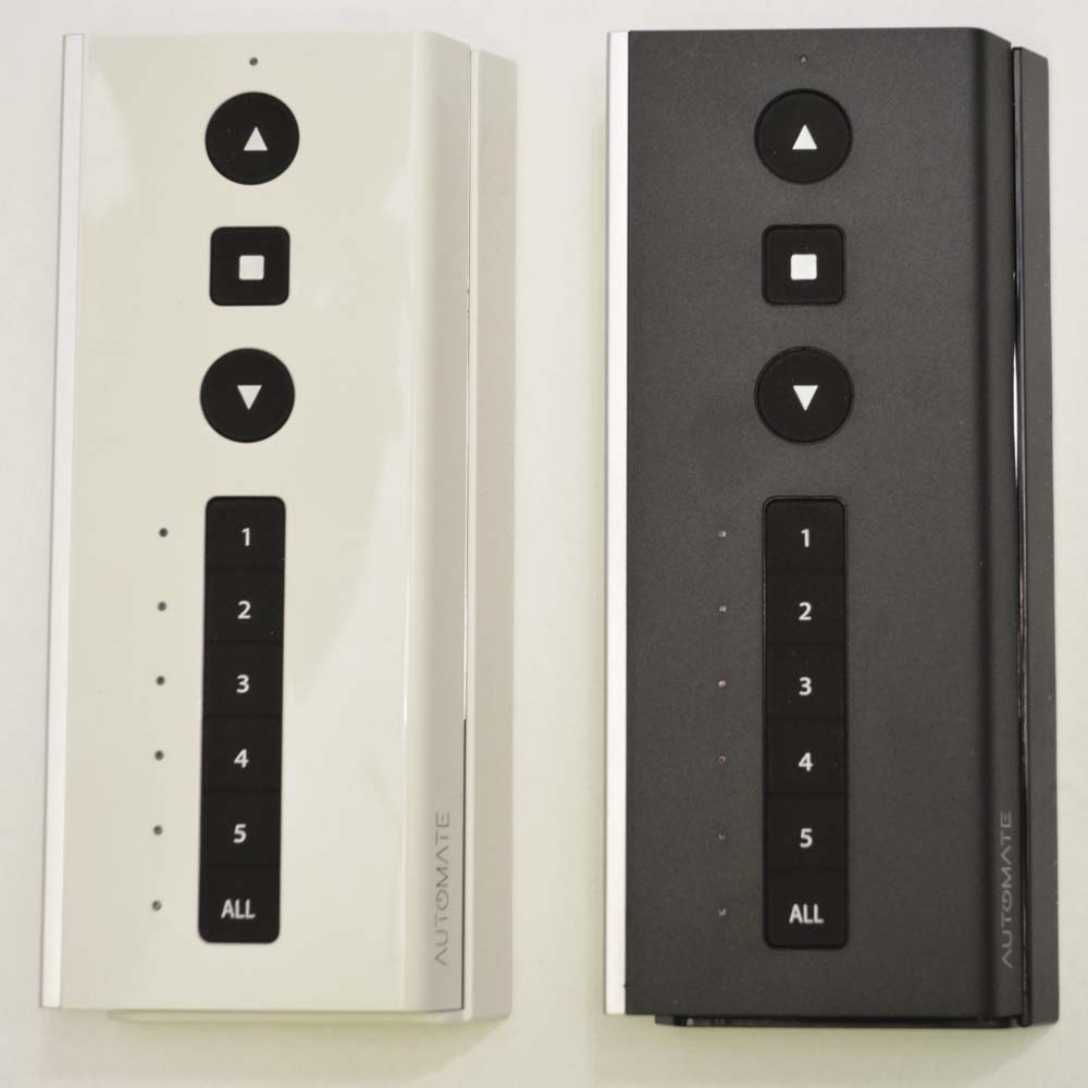 The Rollease AUTOMATE Push 5 remote controls feature a contemporary design with magnetic wall base. With 5 channels of control, the Push 15 remotes are perfect for individual room and whole home shade control. All Rollease remote controls allow you to program the limits of the shade, set a favorite shade position and adjust the speed of the motor.